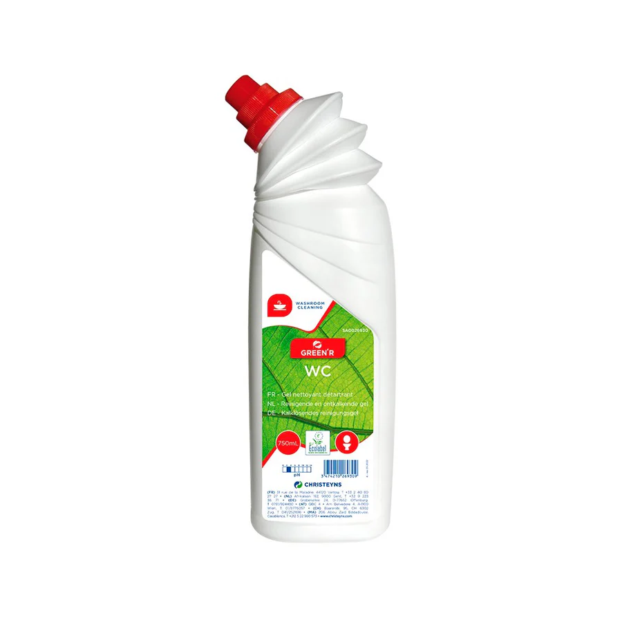 GREEN’R WC ist ein Reinigungs- und Entkalkungsgel für Toiletten und Urinale. In Form eines Gels ermöglicht es einen längeren Kontakt und eine bessere Wirksamkeit, reinigt gründlich, entkalkt und deodoriert die Schalen und Urinale, hinterlässt einen frischen und angenehmen Duft in den Toiletten. Regelmäßige Wartung kann erfolgen, ohne dass eine Gefahr für Klärgruben besteht. GREEN’R WC hat eine sehr geringe Umweltbelastung, bietet jedoch bessere Nutzungseigenschaften als die marktüblichen Produkte, auch die leistungsstärksten.