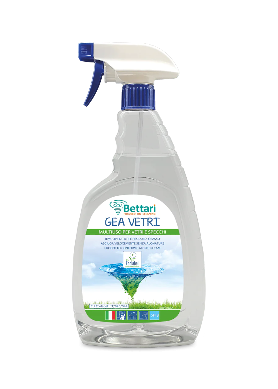 Detergente multiusi per vetri e specchi.